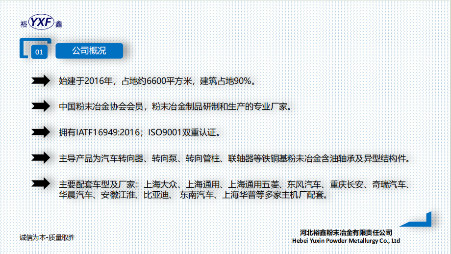 河北裕鑫粉末冶金有限责任公司,始建于2016年,是中国粉末冶金协会会员单位、国内专注粉末冶金制品研制与生产的专业制造企业,更是行业领先的优质汽车转向器系统核心部件供应商。